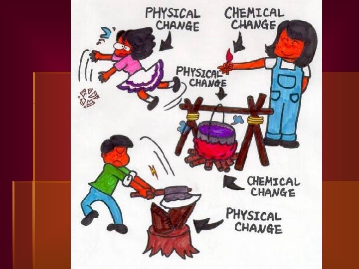 Chemical Changes: § involve a change in identity – the formation of a new substance. Also called a chemical reaction. (see light, feel heat, see bubbles, new smell) Examples: rusting, burning…or…. . Watch this…. . http: //youtu. be/1 z. Wyk. Q 8 Xc 6 w