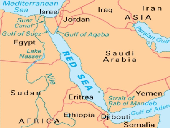 The Red Sea Separates the Arabian Peninsula and the continent of Africa Covers a rift valley created by the movement of the Arabian plate