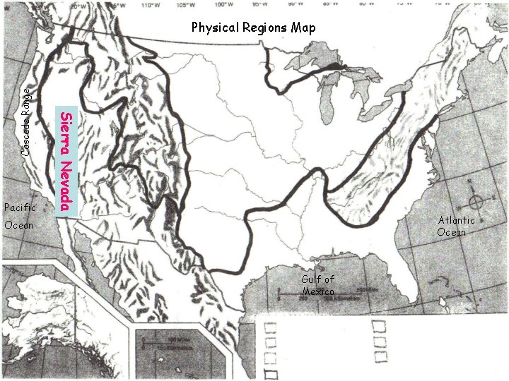 Pacific Sierra Nevada Cascade Range Physical Regions Map Atlantic Ocean Gulf of Mexico
