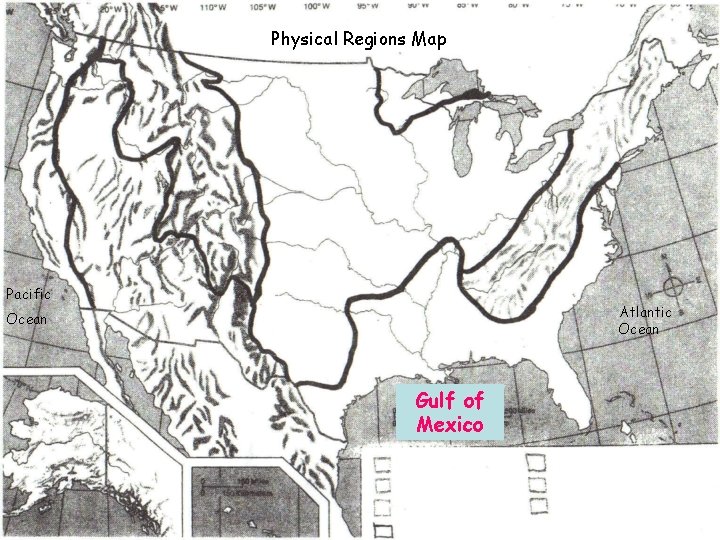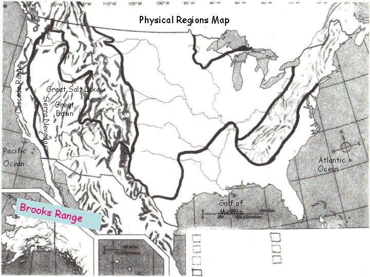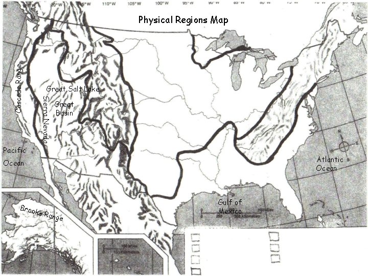 Cascade Range Physical Regions Map Great Salt Lake Sierra Nevada Great Basin Pacific Atlantic Ocean Broo ks R ange Gulf of Mexico