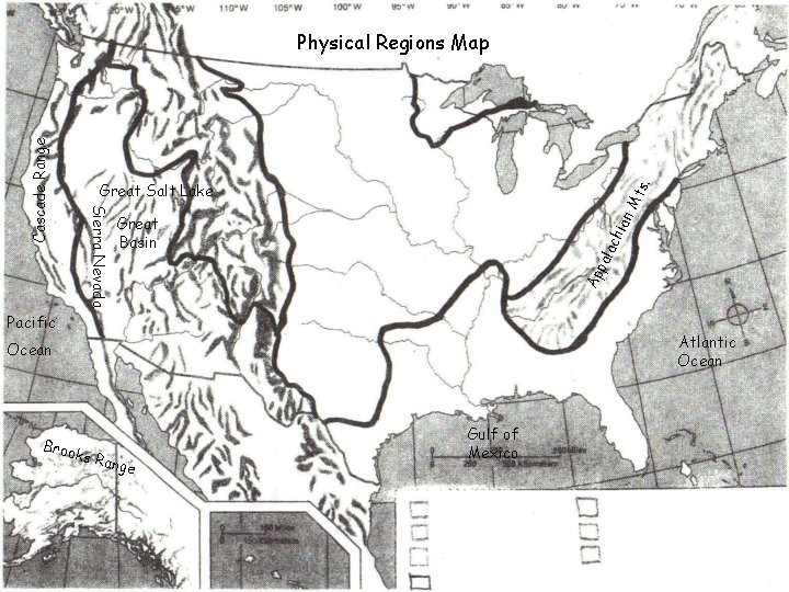 ts. Cascade Range Physical Regions Map pa lac hi an Great Basin Ap Sierra Nevada M Great Salt Lake Pacific Atlantic Ocean Broo ks R ange Gulf of Mexico