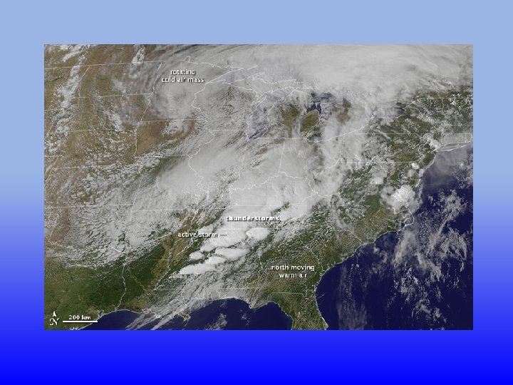 Most precipitation comes from moisture convergence by weather systems The intermittent nature of precipitation (average frequency over oceans is 11%) means that moderate or heavy precipitation • • • Can not come from local column. Can not come from E. Hence has to come from transport by storm-scale circulation into storm. On average, rain producing systems (e. g. , extratropical cyclones; thunderstorms) reach out and grab moisture from distance about 3 to 5 times radius of precipitating area.