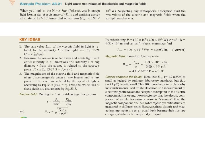 33. 3: The Traveling Wave, Quantitatively: The dashed rectangle of dimensions dx and h in Fig. 33 -6 is fixed at point P on the x axis and in the xy plane. As the electromagnetic wave moves rightward past the rectangle, the magnetic flux B through the rectangle changes and— according to Faraday’s law of induction— induced electric fields appear throughout the region of the rectangle. We take E and E + d. E to be the induced fields along the two long sides of the rectangle. These induced electric fields are, in fact, the electrical component of the electromagnetic wave.