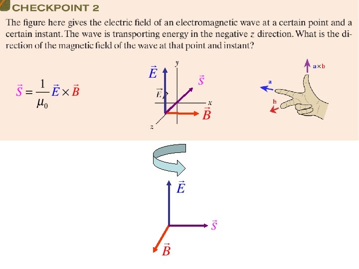 The Poynting Vector: Points in Direction of Power Flow Electromagnetic waves are able to transport energy from transmitter to receiver (example: from the Sun to our skin). The power transported by the wave and its direction is quantified by the Poynting vector. John Henry Poynting (1852 -1914) For a wave, since E is perpendicular to B: Units: Watt/m 2 In a wave, the fields change with time. Therefore the Poynting vector changes too!! The direction is constant, but the magnitude changes from 0 to a maximum value.
