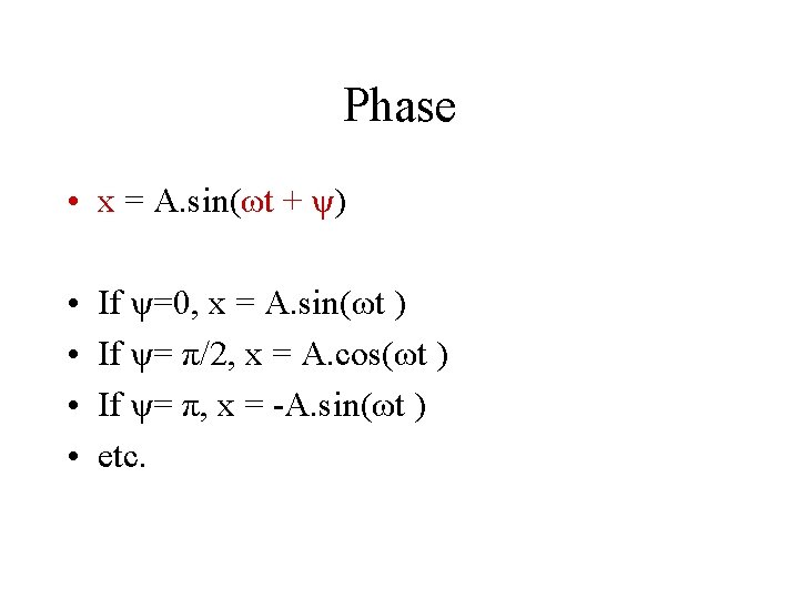 Initial Phase ψ The value of ψis determined by the initial position of x (at t = 0). i. e. how the motion is started.