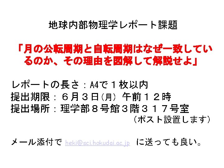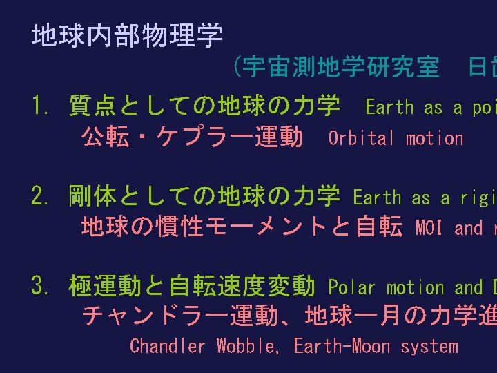 地球内部物理学 Physics of the Earth’s Interior 北海道大学理学院 Hokkaido Univ 地球惑星ダイナミクス講座 Dynamics . Earth and Planetary 日置 幸介 Kosuke Heki へ き こうすけ heki@sci. hokudai. ac. jp