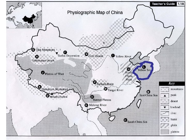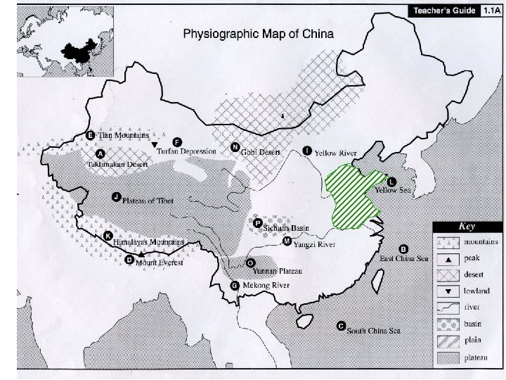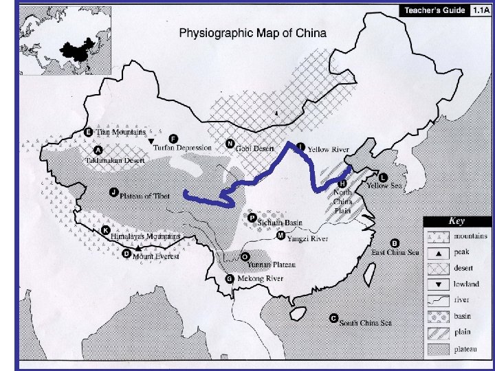 Map Study Directions • Be prepared to discuss the 5 guiding questions. Take Cornell Notes to assist you in the class discussion. • You need a black line map of China. • You need pen/pencil/colored pencils. • Read through the slide show. • Complete the map as you read through the slide show. • Answer 1 question at the end of the slide show on a separate sheet of paper.