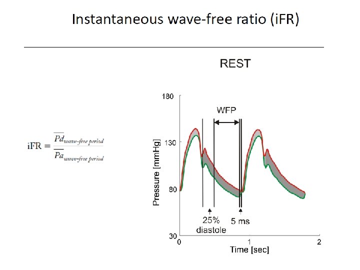 Instantaneous wave-free ratio (i. FR) • reduce the procedural time, improve cost efficiencies as well as improve patient comfort • i. FR is founded on the basis that there is a certain period in each cardiac cycle during which resistance at rest is stable (the wavefree period). • During this phase the ratio of the proximal and distal pressures are proportional to coronary flow