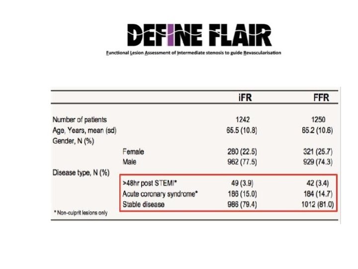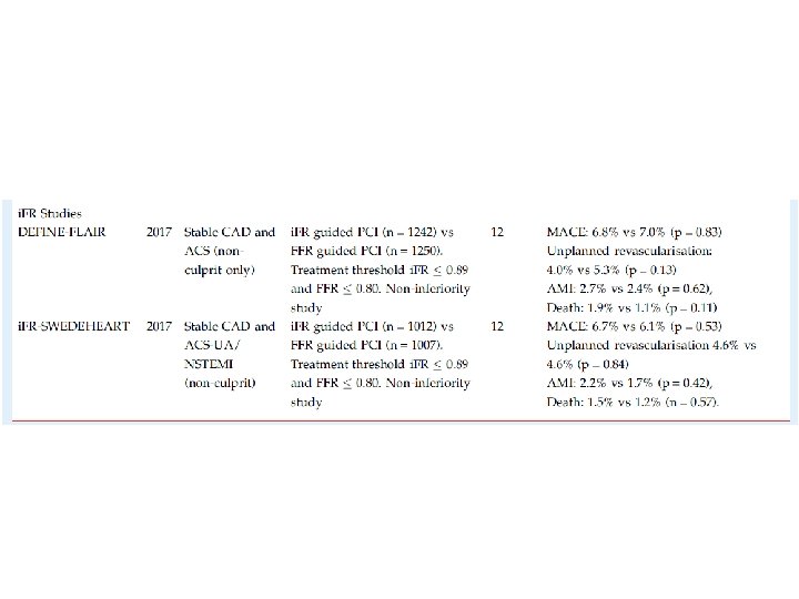 i. FR was non inferior to FFR with respect MACE at 12 months (dead, non fatal MI, unplanned revascularization)