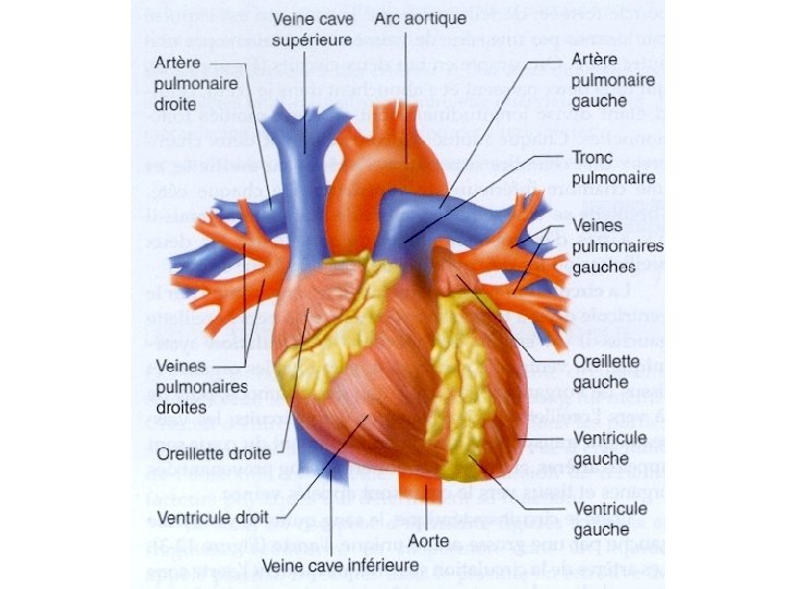 • Le cœur est un véritable muscle creux qui est logé dans le thorax • Chez un homme, le cœur a la taille d’un poing fermé, il pèse environ 300 g, il est responsable de la circulation • Au repos: le volume sanguin est en moyenne de 5 à 6 litres et le débit cardiaque d’environ 5, 5 l/min • Pendant l’exercice intense le débit cardiaque peut atteindre 25 l/min.