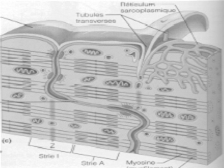 1. Les cellules musculaires cardiaques • Les cellules myocardiques contractiles sont des fibres musculaires allongées, à ramification, présentant des bandes transversales (myofibrilles) identiques aux cellules musculaires striées. • Les cellules sont soudées les unes aux autres grâce à des disques intercalaires, et contrairement aux myocytes striés, ils forment un véritable syncytium grâce à des "gap junction", jonctions communicantes.