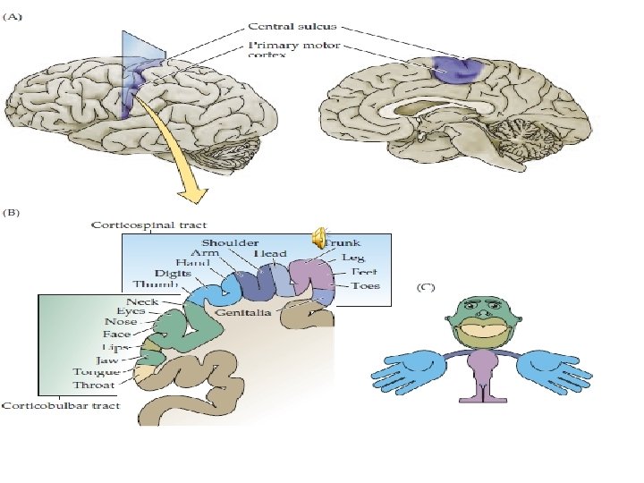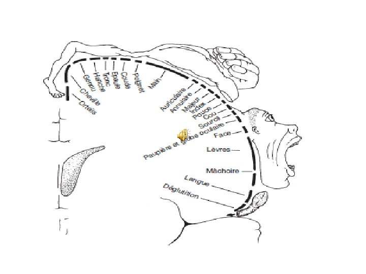 La stimulation: MOUVEMENTS SIMPLES, LOCALISES DANS L’HEMICORPS CONTROLATERAL IL EXISTE UNE CARTE DE REPRESENTATION SOMATOTOPIQUE MOTRICE. HOMONCULE DESSINE : GNOME DIFORME SOMATOTOPIE NON FIXE ET MODIFIABLE ( APPRENTISSAGE ET CHIRURGIE)