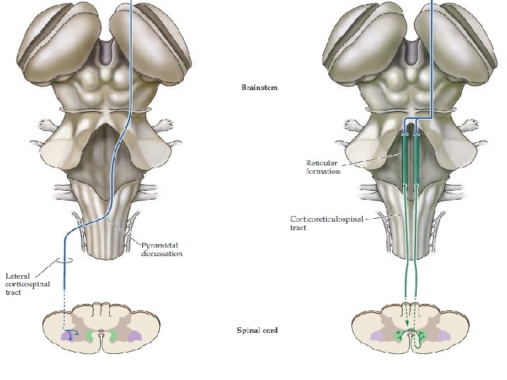 • • La lésion : persistance de mouvement élémentaire Pas de trouble sensitif Perte de mouvements complexes : apraxie (apprentissage antérieur) Tonus +++, reflexe+++ Préhension forcée