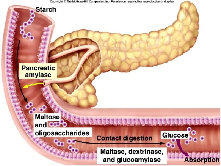 Small Intestine Secretion and Motility • Nutrient absorption takes place throughout the small intestine. • Secretion: Intestinal juice (1 -2 L/day), contains mostly water, mucus, sodium bicarbonate (p. H=7. 4 -7. 8). – Secreted in response to intestinal distension, hypertonic and acidic content of chyme arriving from stomach. • Intestinal Motility: – Peristaltic movements continue and work to move chyme toward large intestine. – Segmentation: ring-like contractions and relaxations that churn and mix food with digestive enzymes only in small intestine.
