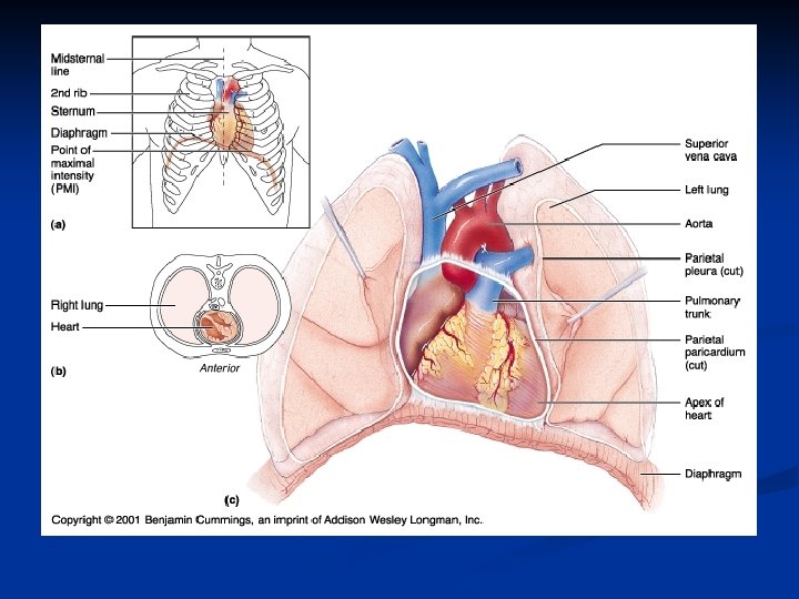 Cardiac Muscle and the Heart n Myocardium n n n Heart muscle Sits in the media stinum of the thoracic cavity Left Axis Deviation n n May have a right axis deviation with obesity and/or pregnancy May hang in the middle of the thoracic cavity if the individual is very tall