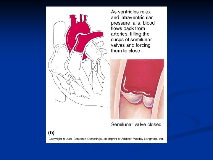 Isovolumetric Ventricular Relaxation Semilunar valves close n AV valves closed n The volume of blood in the ventricles is not changing n When ventricular pressure is less than atrial pressure the AV valves open again n n The Cardiac Cycle begins again