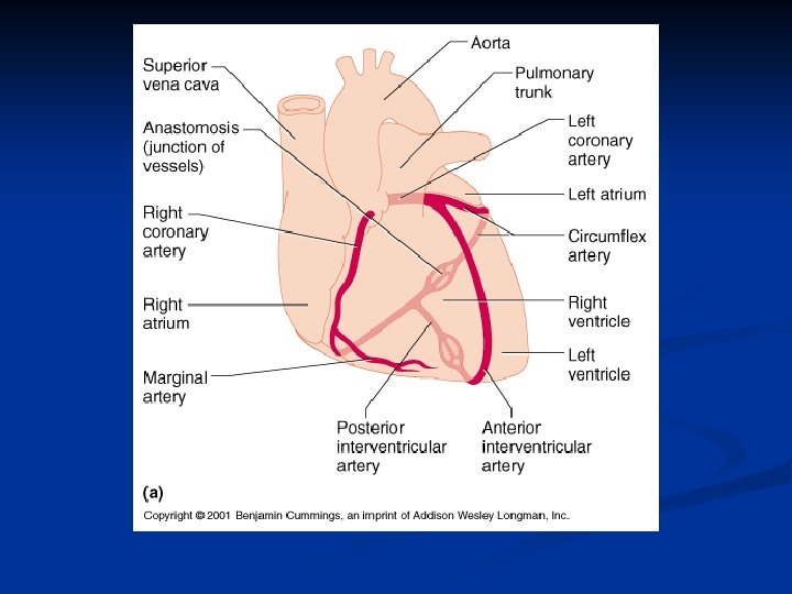 Cardiac Circulation Blood flowing through the heart has a high fat content n Curvature as well as diameter of the arteries is important to blood flow through the heart n n Vasoconstriction due to sympathetic nervous system input n Norepinephrine/Epinephrine n Alpha Receptors not Beta