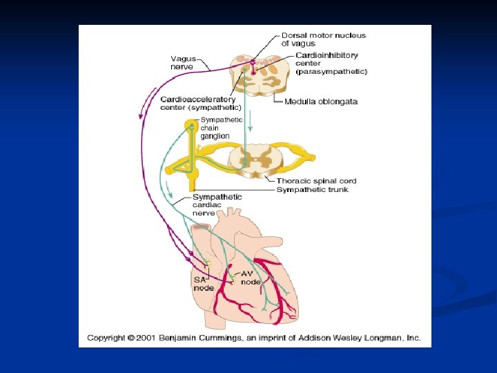Autonomic Neurotransmitters Modulate Heart Rate n The Catecholamines: norepi and epi increases ion flow through If and Ca+2 channels n More rapid cation entry speeds up the rate of the pacemaker depolarization n n Β 1 -adrenergic receptors are on autorhythmic cells c. AMP second messenger system causes If channels to remain open longer