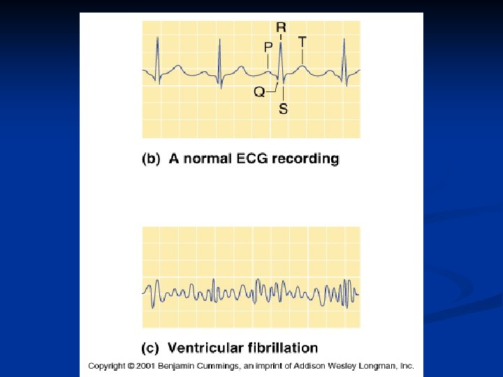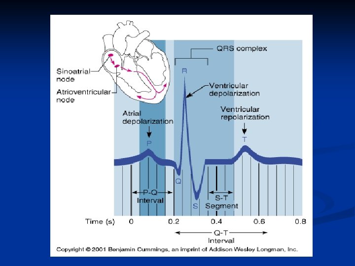 ECG n PQ or PR segment n n Q wave n n n Conduction through bundle branches R wave n n Conduction through AV node and AV bundle Conduction beginning up the Purkinje Fibers S wave Conduction continue up half way ST segment n Conduction up the second half of Ventricles