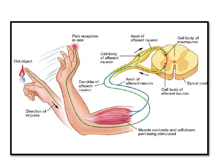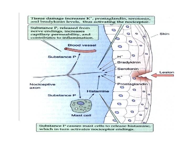 Pain Receptors 5) Adaptation: • Slowly adapting receptors even non adapting receptors • This is very important because it directs the subject to get rid of the injurious agent