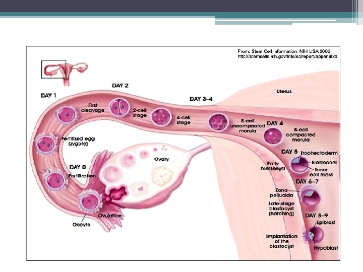 • POST FERTILISATION EVENTS: • ZYGOTE IN 2 CELLED STAGE REACHES THE AMPULLA TRAVERSES THE TUBE AND FALLS INTO THE UTERINE CAVITY • INTIALLY LOOSELY ARRANGED UNTIL 8 CELL STAGE
