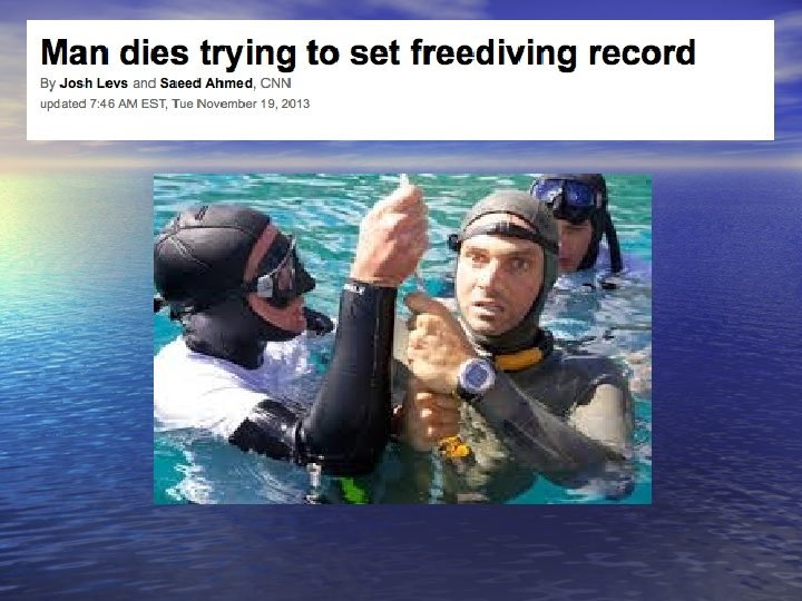 Three Major Problems • 1. • 2. • 3. No lung ventilation for long periods Cold water and high heat loss High pressure at great depths