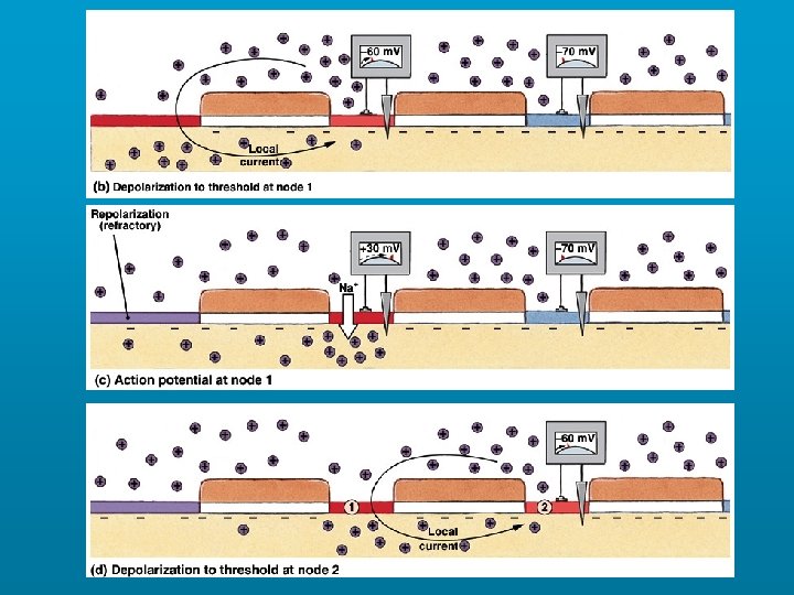 Saltatory AP propagation in myelinated nerves