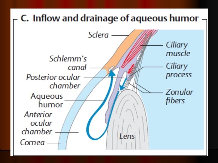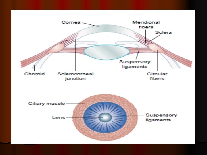 PHYSIOLOGY OF VISION l 2 - The other fibers pass→ Edingerwestphal nucleus of the 3 ed cranial nerve relay in the ciliary ganglion the postganglionic fibers to the: l -Sphincter pupillae muscle→ miosis. l -Ciliary muscle → accommodation for near vision.