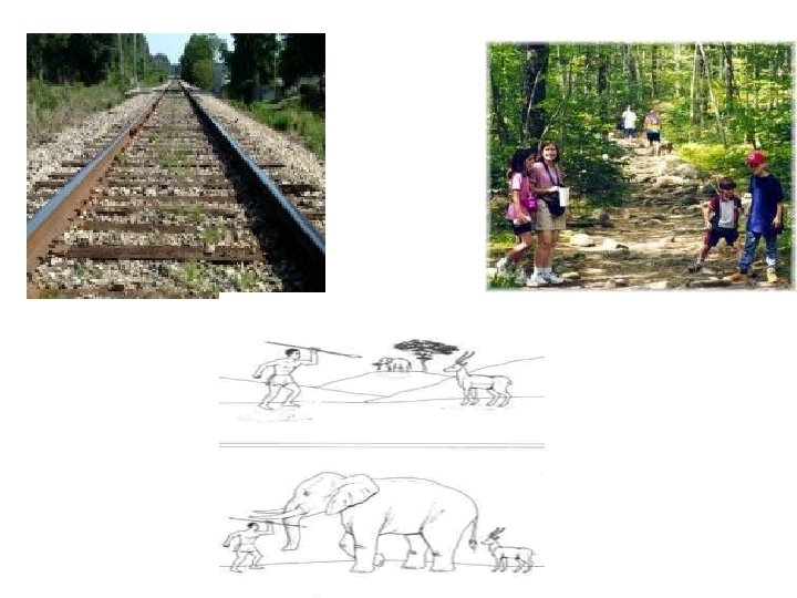 Depth Perception 1. The relative sizes of objects 2. The occlusion of part of a distant object by a nearer on 3. The fade of the colours and details of distant objects 4. Parallel lines appear to converge with distance. 5. Movement parallax