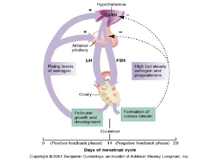 Hormonal Control of the Ovaries Copyright © The Mc. Graw-Hill Companies, Inc. Permission required for reproduction or display. • The hypothalamus, anterior pituitary and ovaries all function to control female hormone levels. Like other hormones, female hormones are regulated by feedback mechanisms. hypothalamus Gn. RH anterior pituitary follicle FSH LH corpus luteum progesterone oocyte estrogen
