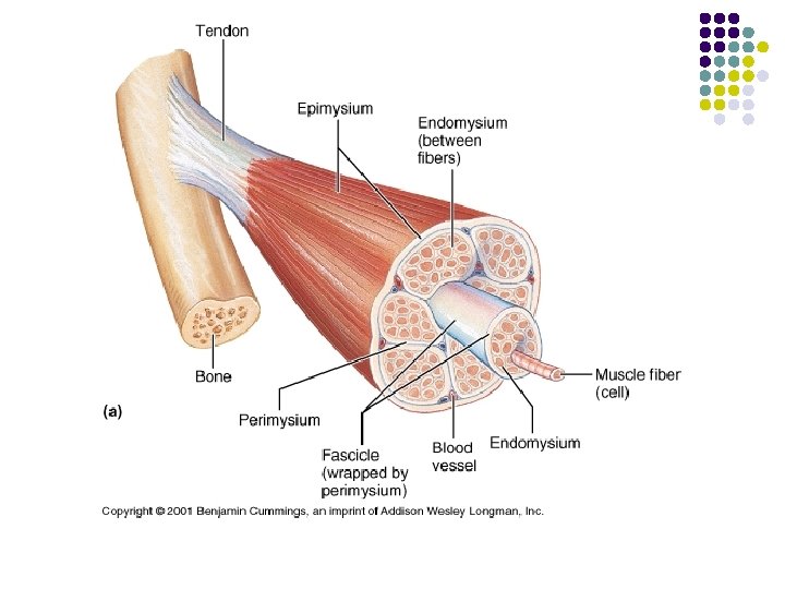 Connective Tissue l Endomysium l l l Perimysium l l l Surrounds each muscle fiber (cell) Attaches to Z-lines in each sarcomere Surrounds bundles (fascicles) of muscle fibers Attaches to endomysium Epimysium l l Attaches to the Perimysium Continuous with tendon