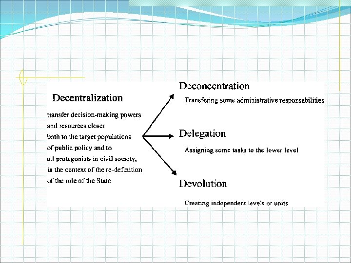 Forms of Decentralized Service Delivery in Unitary Systems �Program and Project Decentralization: �Inter-Ministerial Committees or Units � Planning supervision � Overlapping memberships, e. g. Land Use Planning