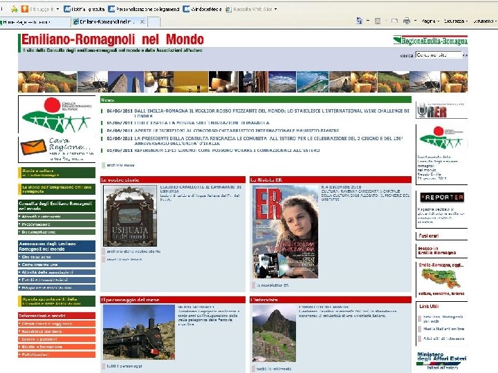 INTERNET www. emilianoromagnolinelmondo. it – Informazioni rivolte ai nostri emigrati sulle politiche della Regione e su quanto stiamo facendo – Informazioni sulle iniziative dei nostri emigrati