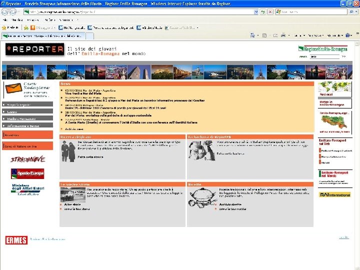 INTERNET www. regione. emilia-romagna. it/reporter/ - dedicato ai giovani - tra i corrispondenti i giovani emiliano romagnoli che sono stati formati all’interno del programma Boomerang Reporter