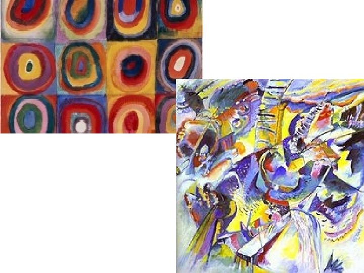Vystavit obraz bez jakéhokoliv poznatelného předmětu? • Prvním umělcem kdo to udělal byl pravděpodobně ruský malíř Vasilij Kandinskij žil tehdy v Minichově. • Neměl rád pokrok a vědu, toužil po regeneraci světa pomocí nového umění. • Zdůrazňuje psychologické účinky čisté barvy. • V roce 1911 vystavil první pokusy barevné hudby – první obraz toho, co vešlo ve známost jako abstraktní umění.