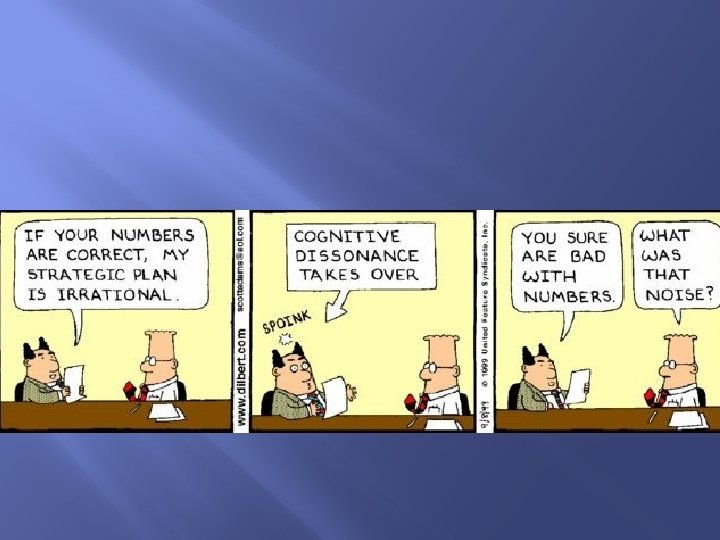 Cognitive Dissonance � � � We expect consistency in our beliefs and actions When your behavior and attitudes don’t agree War in Iraq – WMD