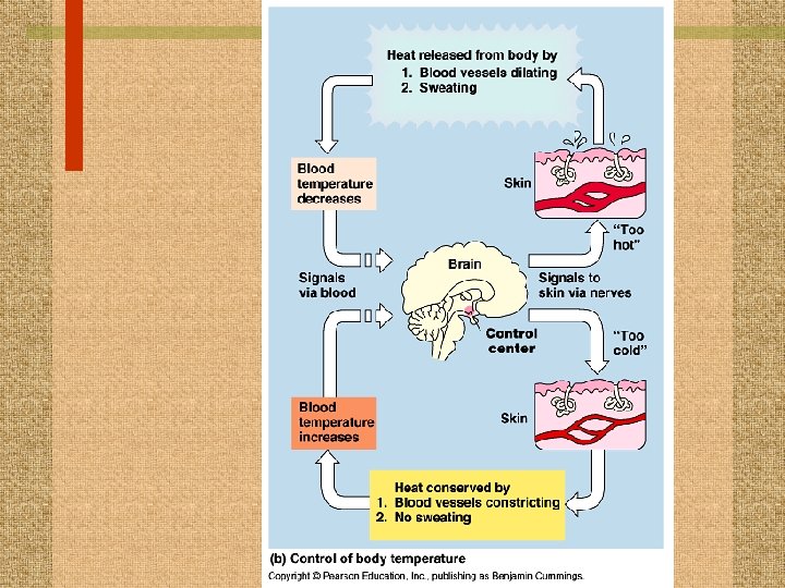 Internal regulation • • Interstitial fluid: internal fluid environment of vertebrates; exchanges nutrients and wastes Homeostasis: “steady state” or internal balance Negative feedback: change in a physiological variable that is being monitored triggers a response that counteracts the initial fluctuation; i. e. , body temperature Positive feedback: physiological control mechanism in which a change in some variable triggers mechanisms that amplify the change; i. e. , uterine contractions at childbirth