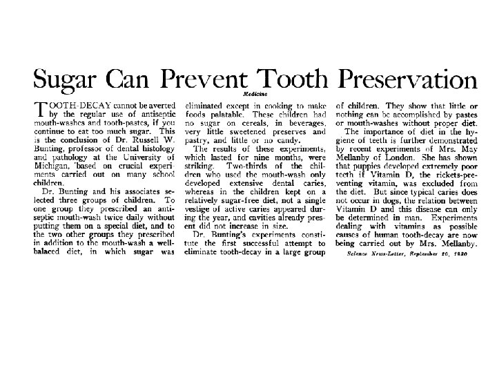 The belief that… pure sugar may cause tooth decay has received considerable attention. The consensus of opinion is that sugar in itself has no harmful effect… Bing – Secretary of AMA – Authorized by CDT October 1932