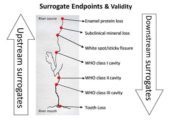 Additional Examples Disease Surrogate Tangible Outcome Misleading AIDS CD-4 AIDS event yes Osteoporosis Bone density Fracture yes Cancer Tumor size Mortality yes Periodontitis Pocket depth Tooth loss ? Caries Enamel caries Pain/tooth loss ?