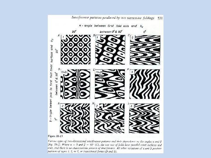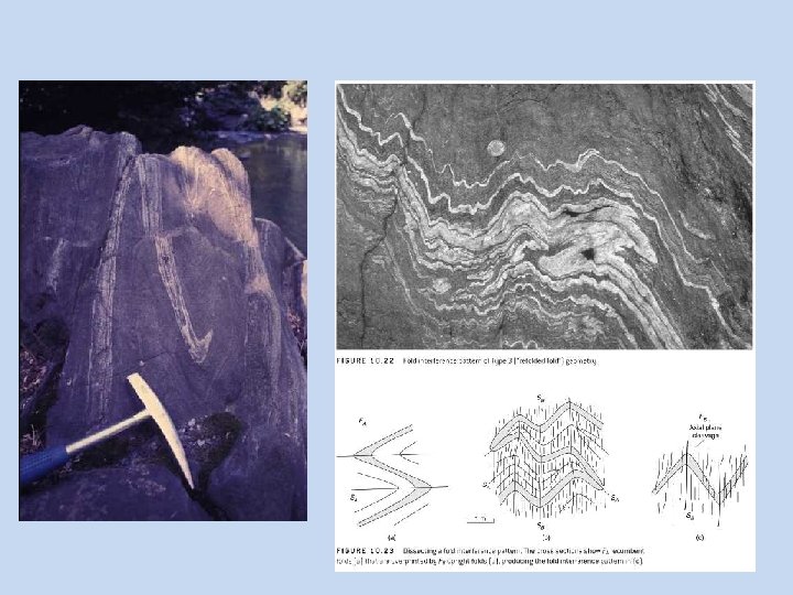 Piegamenti sovrapposti In many areas, particularly within the internal parts of mountain belts, folds can be developed more than once. Consequently outcrops and regions can show patterns that indicate fold interference, generated by a later set of folds refolding another.