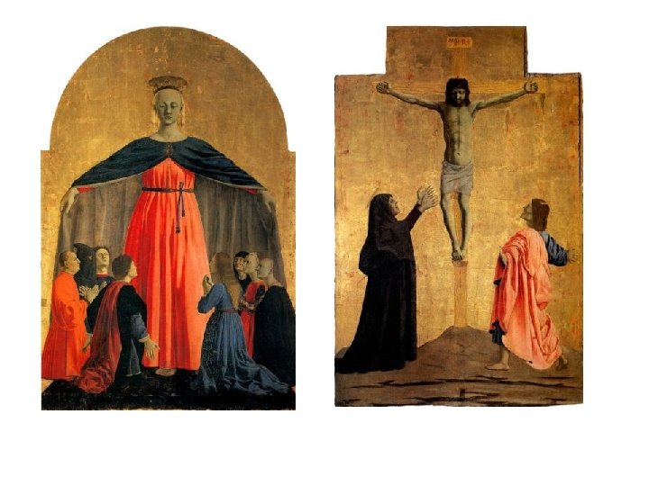 IL DITTICO DEI DUCHI DI MONTEFELTRO • Fiamminghi: oggetti, luce e colori a olio • Naturalismo/luminismo fiammingo+rigore geometrico • Profilo: no sentimenti • Linea di contorno netta • Volume: toni di colore • Trasfigurazione • Ritratti comunque somiglianti