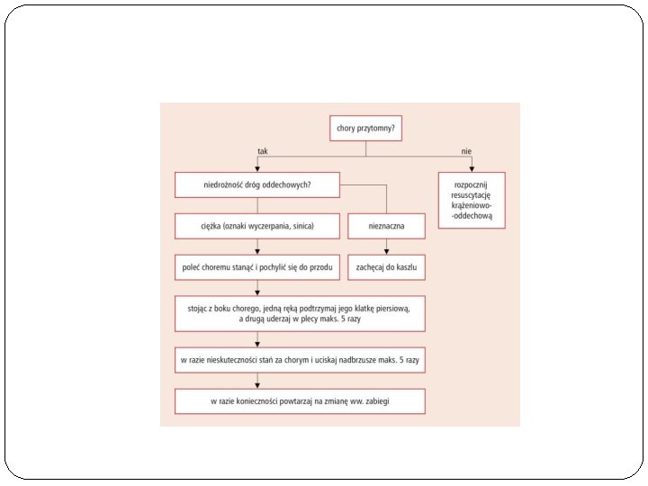 Instrukcja udzielania pierwszej pomocy przy zakrztuszeniu niemowlaka Jeśli udało się usunąć ciało obce: �jeśli dziecko zaczęło się ruszać lub kaszleć, sprawdź, czy oddycha prawidłowo �jeśli oddycha, ale wciąż jest nieprzytomne, ułóż je na boku i zaczekaj na przyjazd pogotowia
