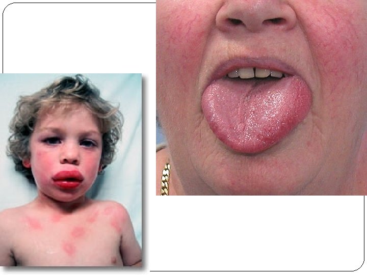 Wstrząs anafilaktyczny objawy �Układ krążenia: �Tachykardia, �Zaburzenia rytmu, �Spadek BP, �Układ pokarmowy: �Kolka, �Nudności, wymioty, �Biegunka,