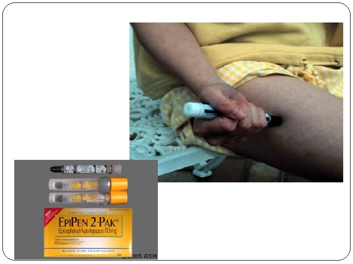 Wstrząs – pierwsza pomoc �Przerwać narażenie, �Natychmiast wezwać pomoc, �Podać adrenalinę 0, 5 mg i. v. (1: 1000), �Położyć poszkodowanego, w przypadku silnej duszności – zastosować pozycje siedzącą �Zapewnić komfort termiczny, �Zapewnić komfort psychiczny.