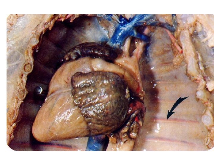 A. Examination of the Heart • Locate a pair of thickened white strands, which are present on either side of the pericardial sac. These are the phrenic nerves. Tease these nerves away from the pericardium and observe their distribution to the diaphragm. • Remove the pericardial sac from around the heart - be careful to not cut blood vessels or nerves in the process. Note that the pericardial membrane is strongly attached where the blood vessels enter and leave the heart. Identify the 4 chambers of the heart: the thin-walled right atrium (auricle), the thin-walled left atrium (auricle), the thick-walled right ventricle and the thick-walled left ventricle. Note the coronary artery and the coronary vein which are present in the diagonal groove between the 2 ventricles.