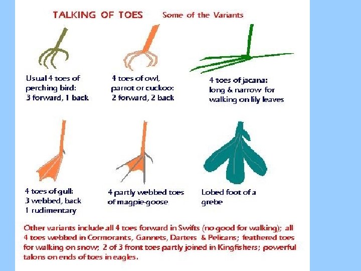 MODIFICATIONS of DIGESTIVE SYSTEM • Fast efficient digestive system fuels endothermic metabolism for more energy for extended activity • CROP- stores next batch so food always moving through • 2 part stomach (Crop/Gizzard)so food moves through faster • COLIC CAECA- help break down plants • LONG SMALL INTESTINE-absorbs lots of nutrients • SHORT LARGE INTESTINEAbsorbs less water / feces not stored… out of body as it is made so weigh less