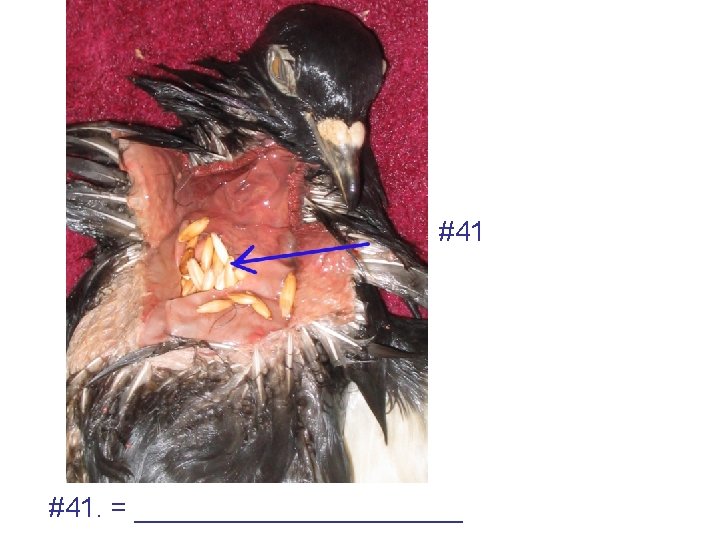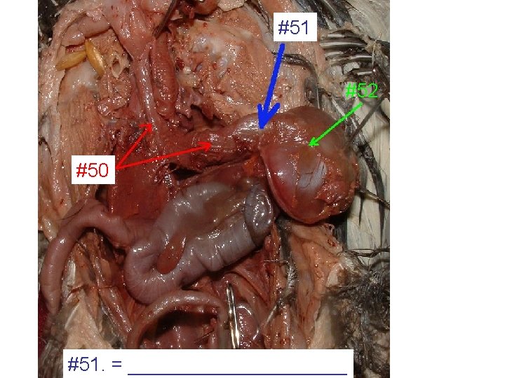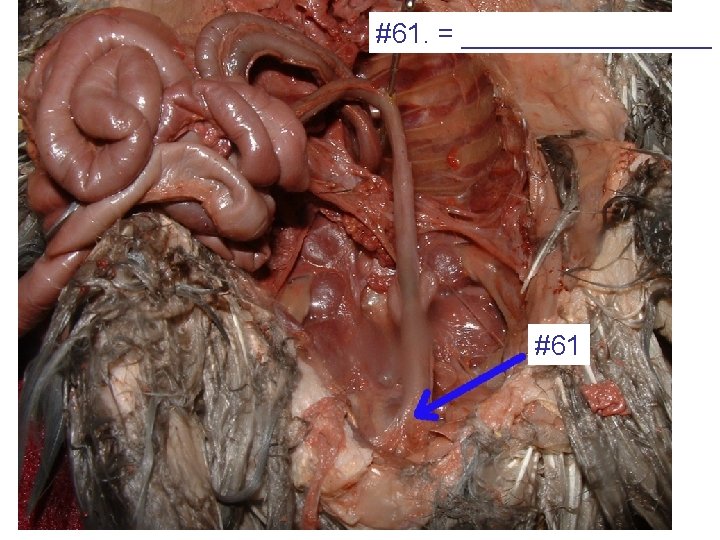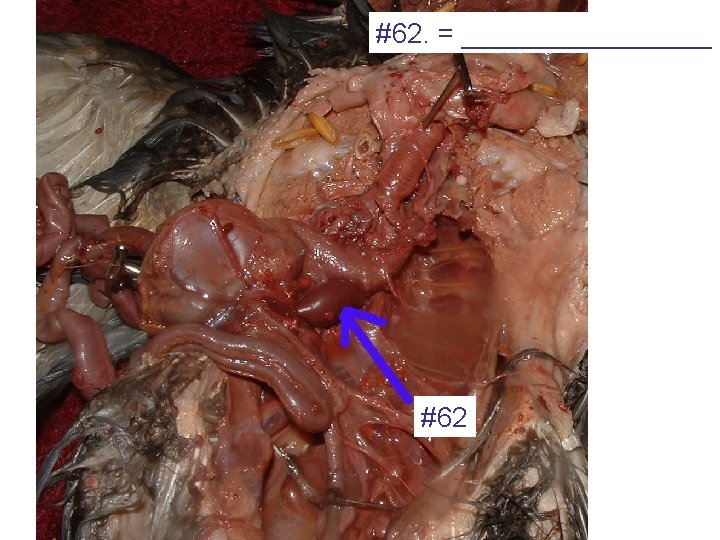 Pigeon Parts Makeup Quiz 1 2 Name one Slides: 61 Download presentation Pigeon Parts Makeup Quiz #1 #2. Name one of the substances produced by #1 that make it an ENDOCRINE organ #1 #3. Tell what this #2 substance does. #2 #1 #2 #4. Name this part of the tube #2 #1 #2 #5. Name the digestive enzyme added in #2. that is made by #1. #6 #6 #6. These small white pouches are called _____ #7. Give a function for #6. #6 #6 #8 #8. = _________ #9. Give a function for #8. # 10 #10. Name the membrane that protects the eye. # 11 #11. Name the membrane found INSIDE this hole. # 12 #12. Name this fleshy area. # 13 #13. Another name for nostrils is _________ # 14 #15. Give the body system for #14. # 16 #16. Name this bone # 16 #17. Give the body system for #16. Name the heart parts: # 18 # 19 #22 #21 #20 #18. = _______ #19. = _______ #20. = _______ #21. = _______ Name the heart parts: # 18 # 19 #22 #21 #20 #22. Name this dividing wall. #23. Which side of the heart carries ONLY LOW oxygen blood? #24 #25 #27 #26. Give a function for #25 #28 #29. Give a function for #28. #28 #30. Give the body system for #28. #28 #31. Name the tube that connects #28 to the cloaca. #32 removed and enlarged #32. = _______ #33. Give a function for #32 #34. Give the body system for #32 #32 #35. Name these small air sacs INSIDE #32. #36 #38 #37. Give a function for #36. #36 #38. Name the tube that connects #36 to the cloaca. #39 #39. Name this exit. #39 #40. Name the body systems that use #39 as an exit. #41 #42 Give a function for #41. #43 #43. Name this featherless patch of skin on the tummy. #43 #44. Give a function for #43. #45 #47 #46. Give a function for #45. #45 #47. This flat, light colored tube = ______ #45 #47 #48. Give a function for #47. #45 #47 #49. Give the sex of this bird #51 #52 #50 #53. Give a function for #52. #51 #52 #50 #54. Give a body system for #52. #55 #56 & #57. Give TWO functions for #55. #59 #58. Name this part of the tube. #59 #58 #59. Name this part of the tube. #60. Which of these absorbs nutrients? #59 #58 or #59 #58 #63. Give a body system for #62 http: //www. altx. com/au 2/lmw. html BONUS #1. Name this bone. (Use the scientific name BONUS #2. Name the largest blood vessel leaving the heart that replaces the missing conus arteriosus in birds (and also humans)