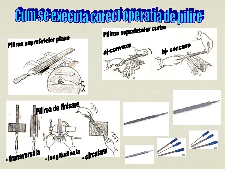 �� suprafeţe plane-rigle de control; �� suprafeţe unghiulare-echere; �� suprafeţe profilate-şabloane