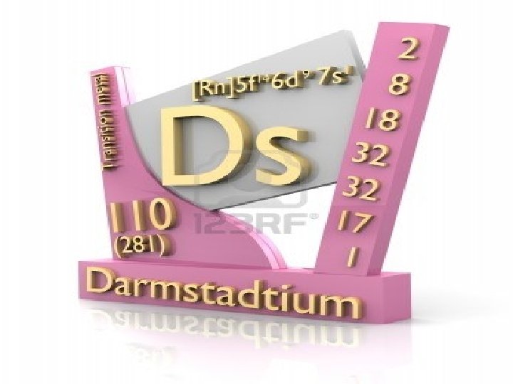 Historia Fue creado por primera vez el 9 de noviembre de 1994 en la Gesellschaft für Schwerionenforschung en Darmstadt, Alemania, por P. Armbruster, S. Hofmann, G. Münzenberg y otros. Nunca ha sido visto y sólo unos pocos átomos del mismo han sido creados por la fusión nuclear generada mediante el bombardeo de isótopos de plomo (208 Pb) con iones acelerados de níquel (62 Ni, 311 Me. V), en un acelerador de iones pesados. El elemento fue nombrado en honor al lugar donde fue descubierto, Darmstadt, por la IUPAC en agosto de 2003.