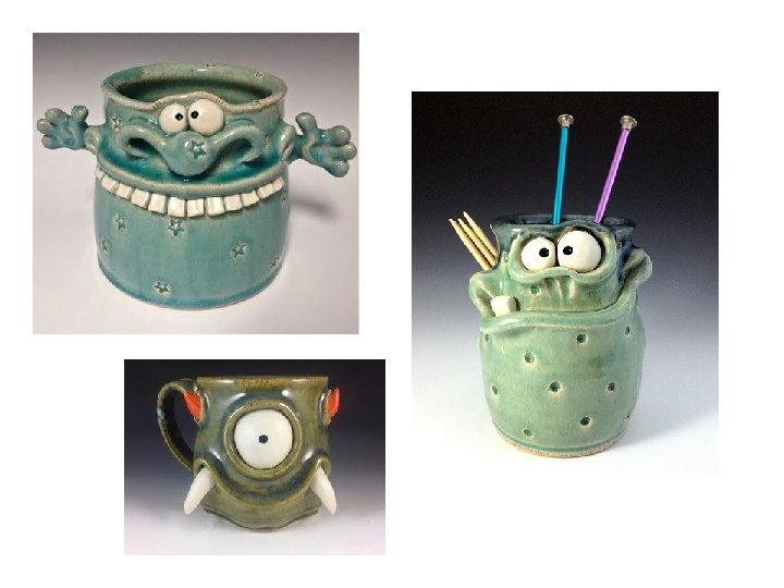 Pinch Pot Monster Glazing and Finishing Options • OPTION 1 – put in 2 nd firing (Glaze temp) without glaze on it and apply acrylic paint AFTER fired. You will be able to get bright, brilliant colors that you can blend. • * this should NOT be your choice if you want something water tight or glossy in appearance • DO NOT use the glaze palettes for acrylic paint – USE A PAPER PLATE. You must clean brushes after painting!